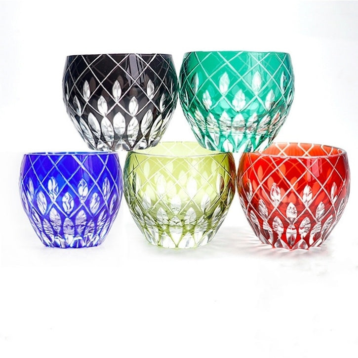 Hand-carved Crystal Glass Whisky Tumbler Double Colored Sake Tumbler
